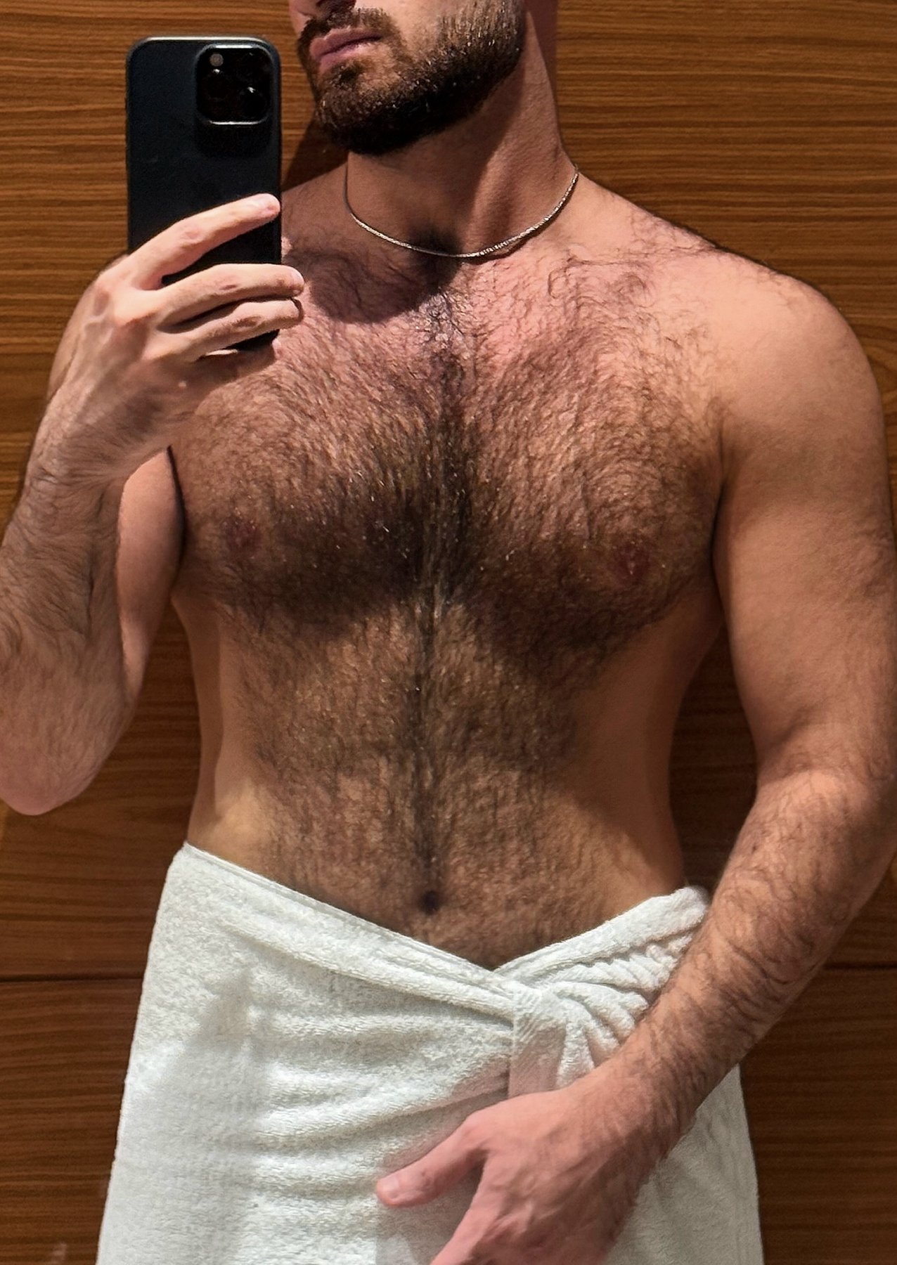 Masculine, hairy, great-looking, calm, and real.