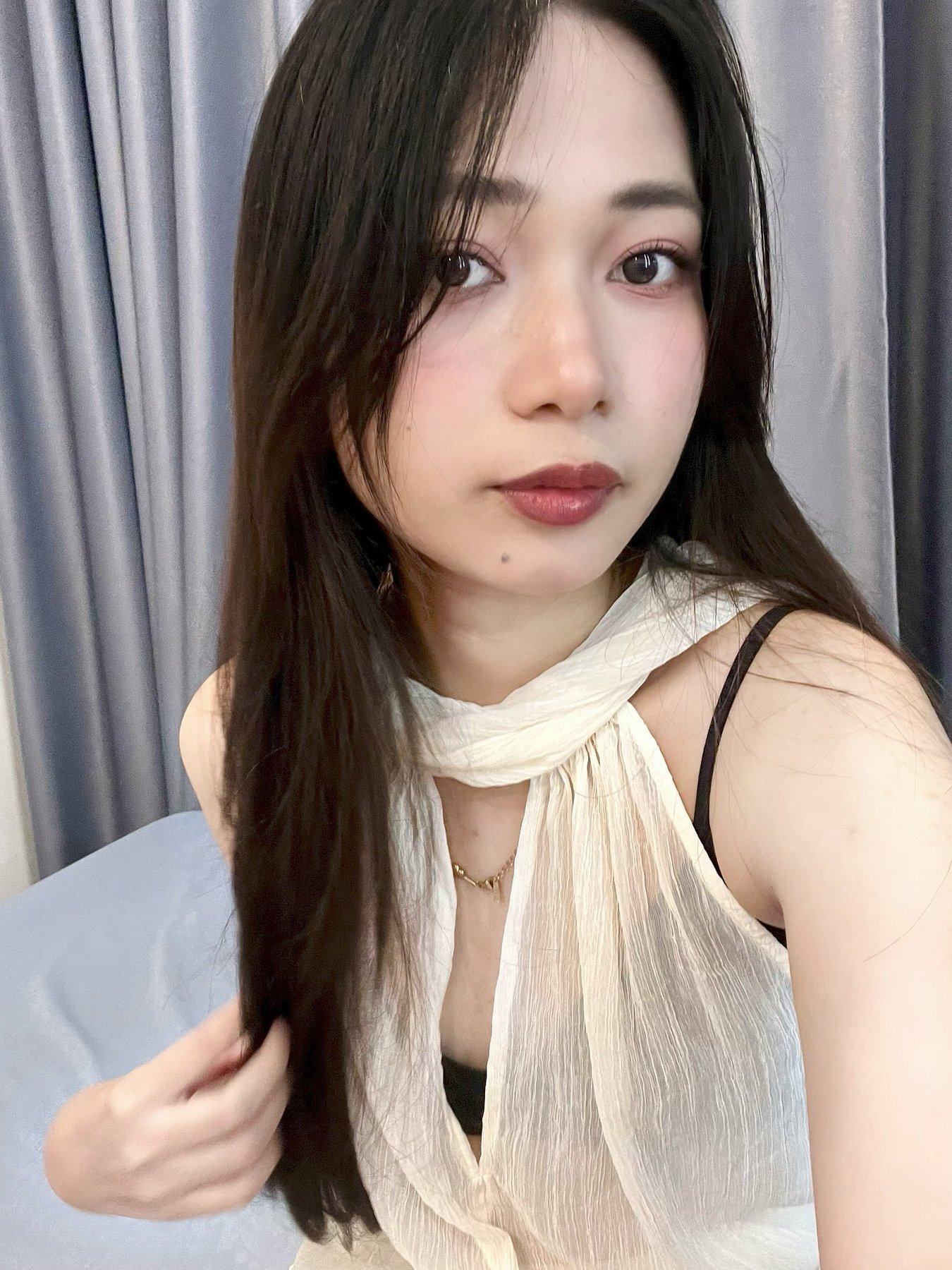 Petite Asian beauty with a calm, elegant presence and a naturally captivating look.