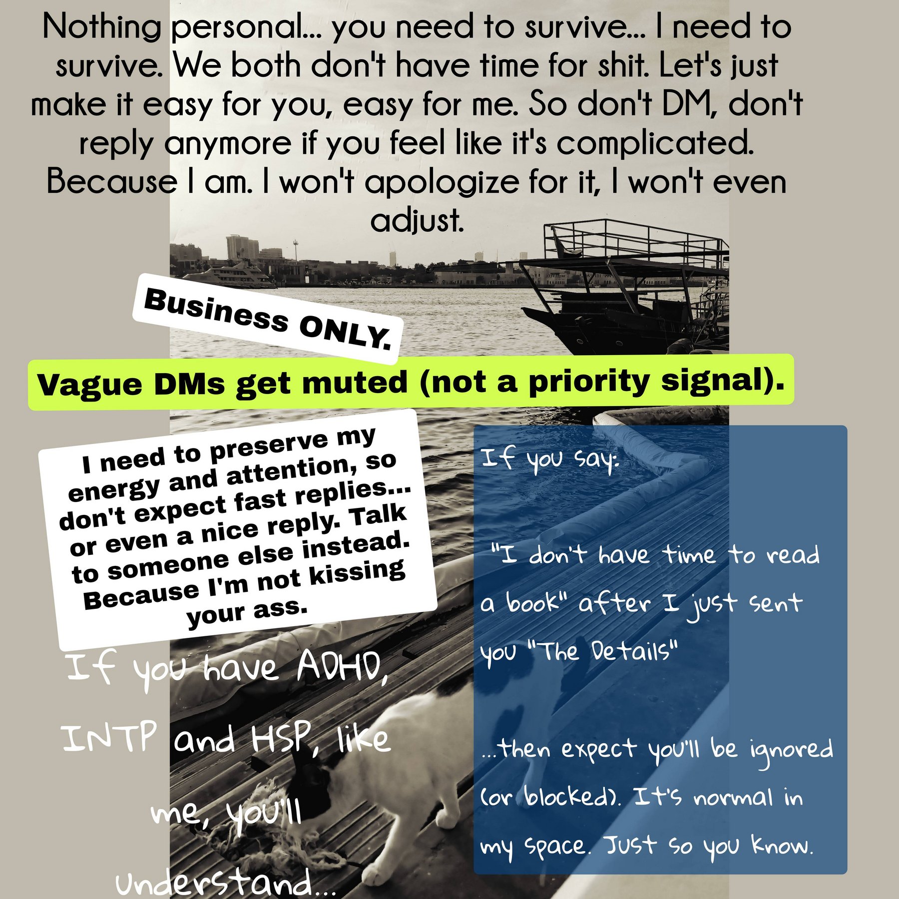 Because I don't like confusion. I want yes or no. No long chats in person or in Whatsapp. It helps me with my ADHD. It helps me manage my intense emotion and attention management 😄