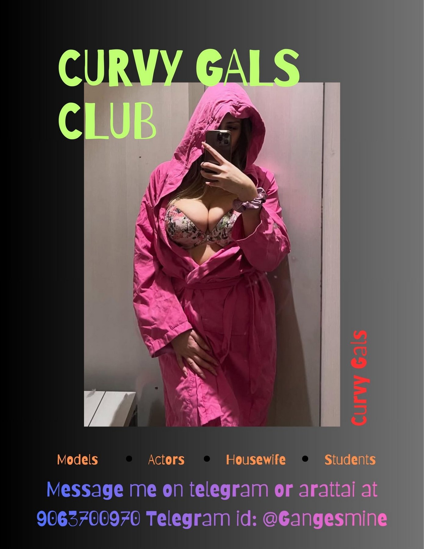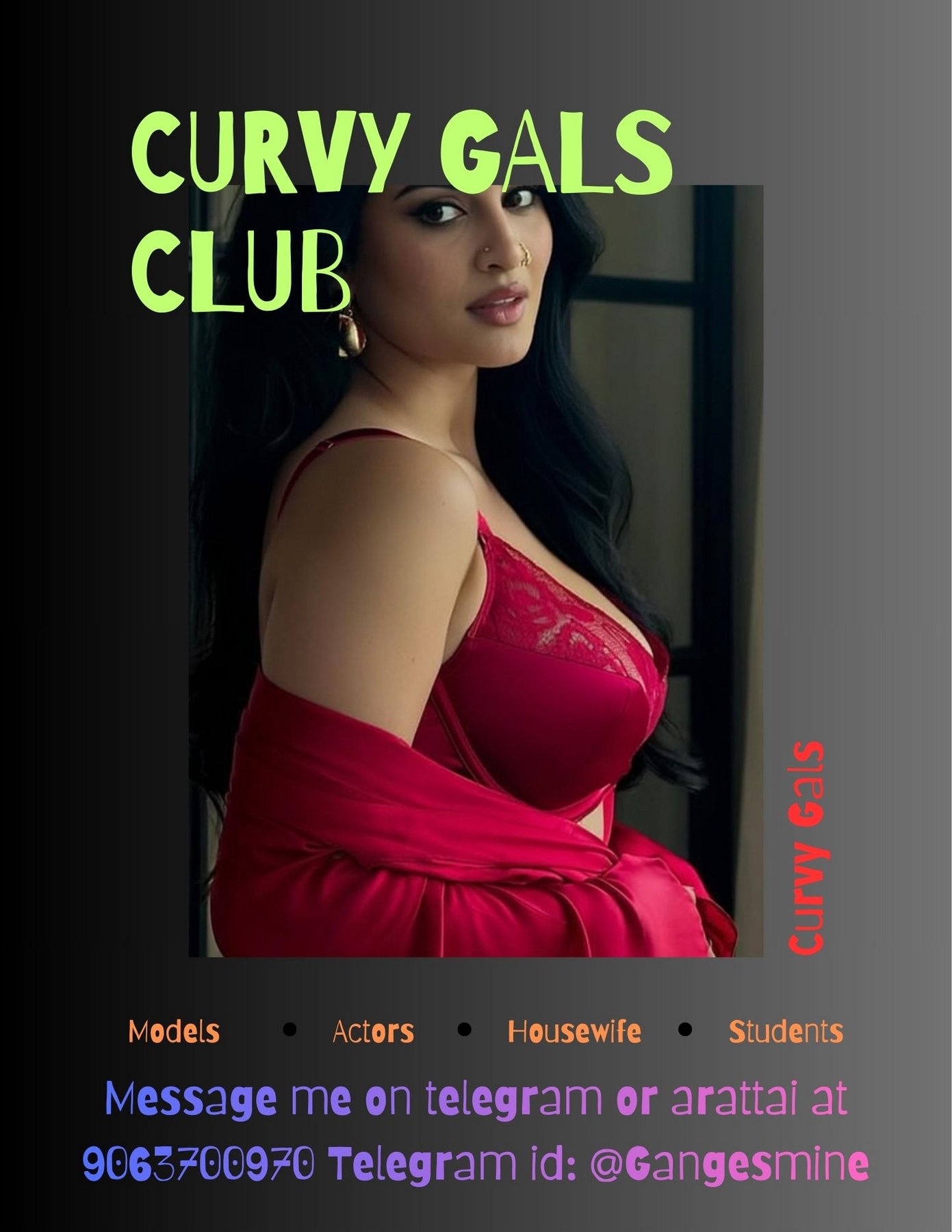 have a great time, enjoying sex at the highest levelCome and enjoy spicy sex full of passion. My menu includes adventurous positions like doggy style and 69, passionate oral and anal play, intimate kissing, and other exciting options.Message me on telegram or arattai Telegram id: @Gangesmine
