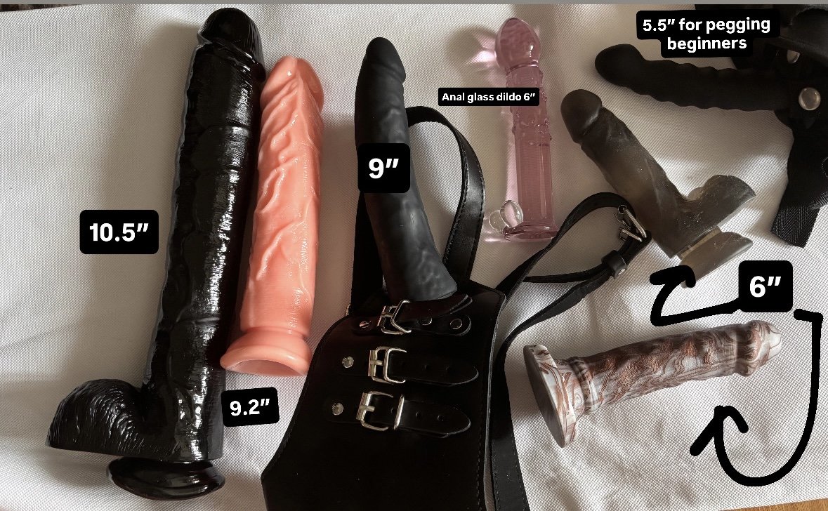 -pegging (various strap-on sizes: beginner's size to monster 10.5")