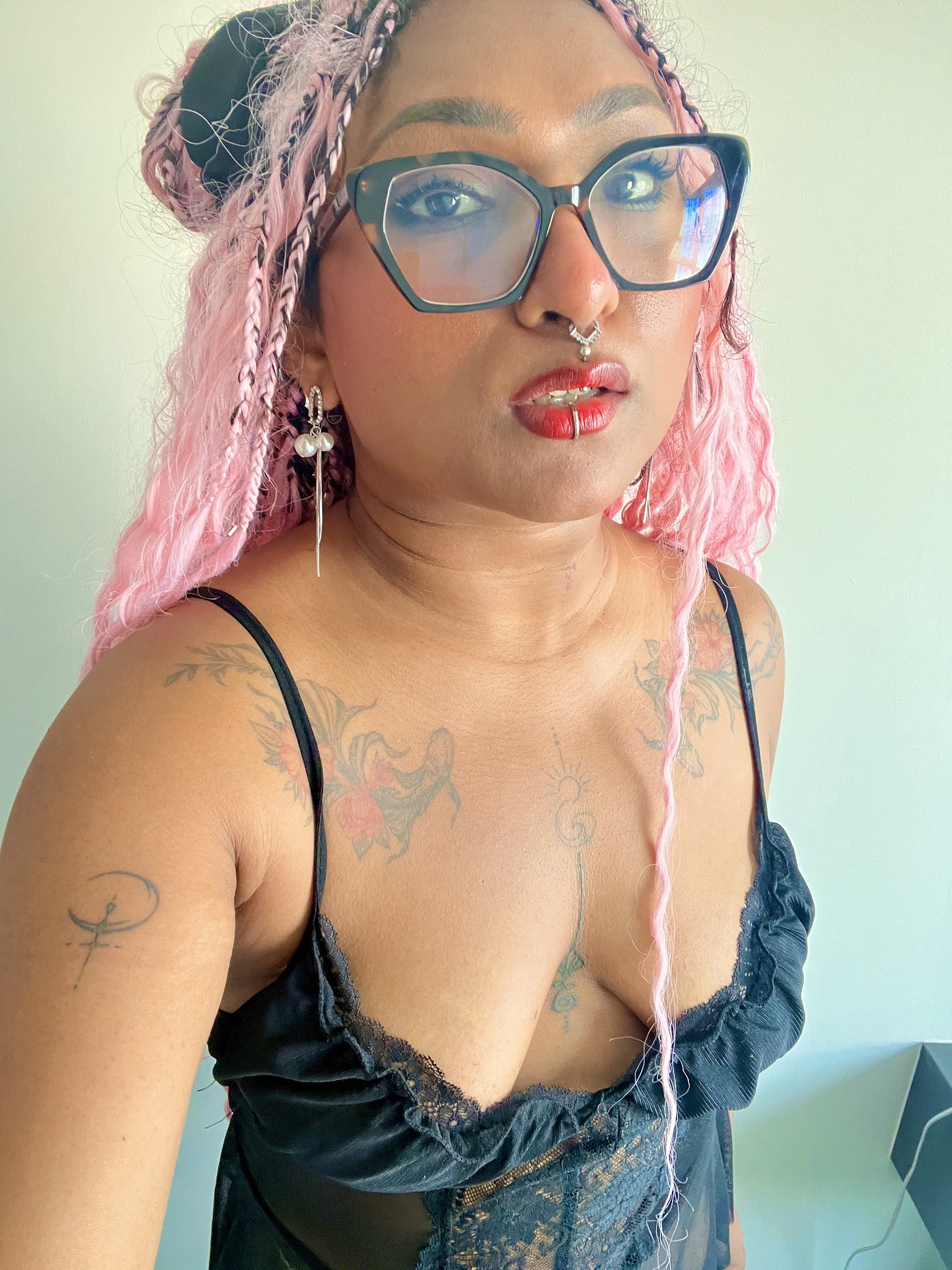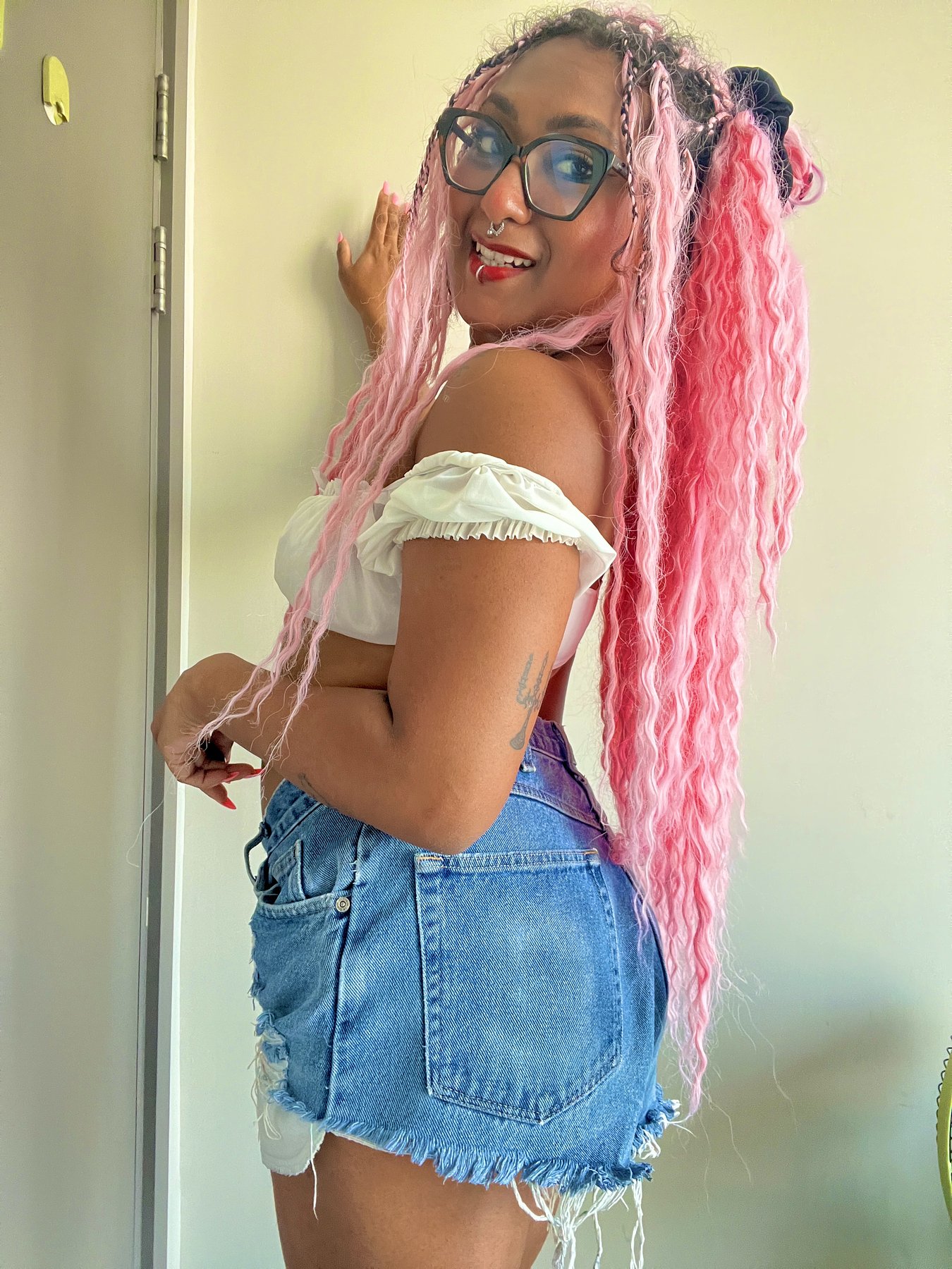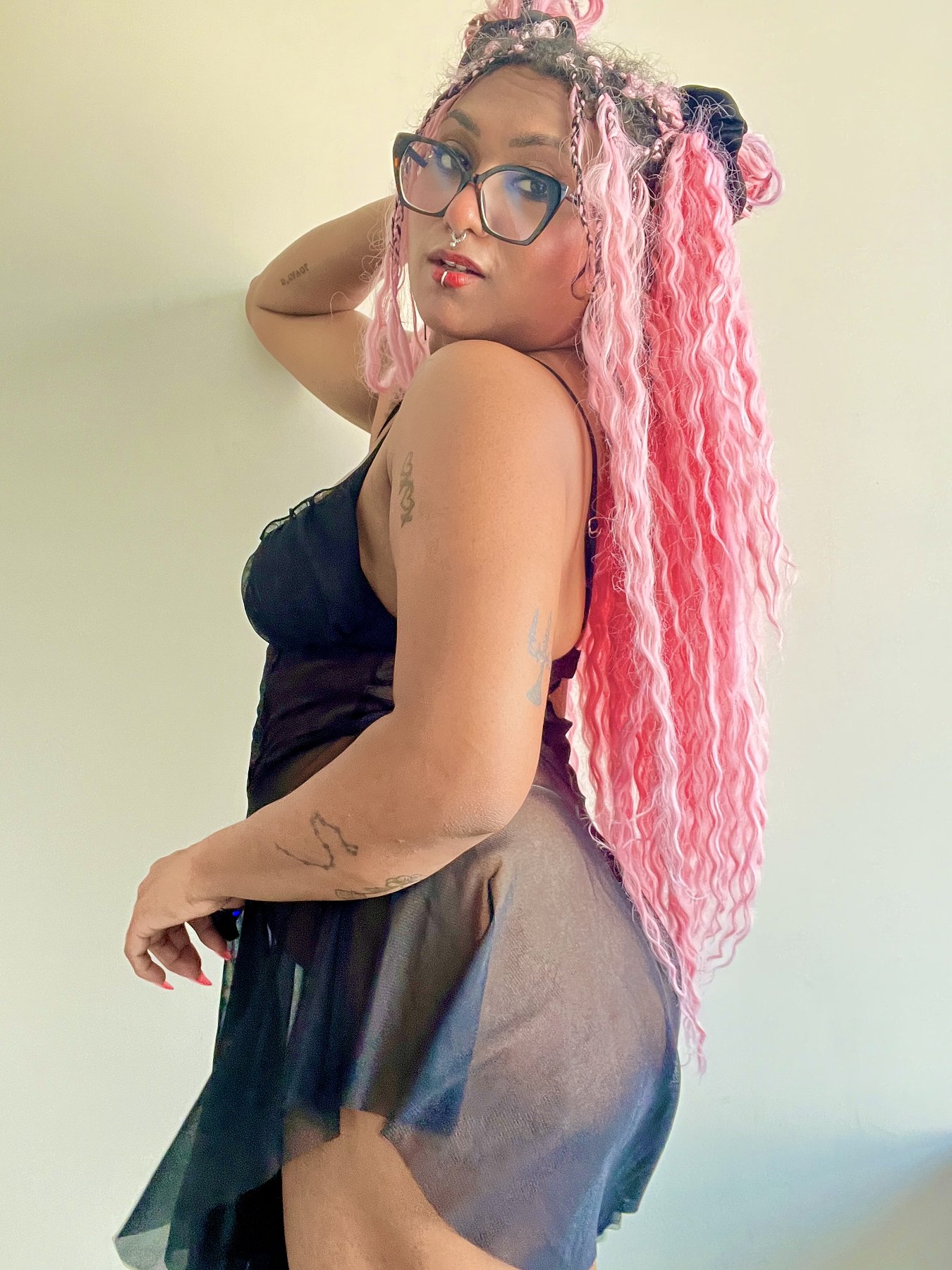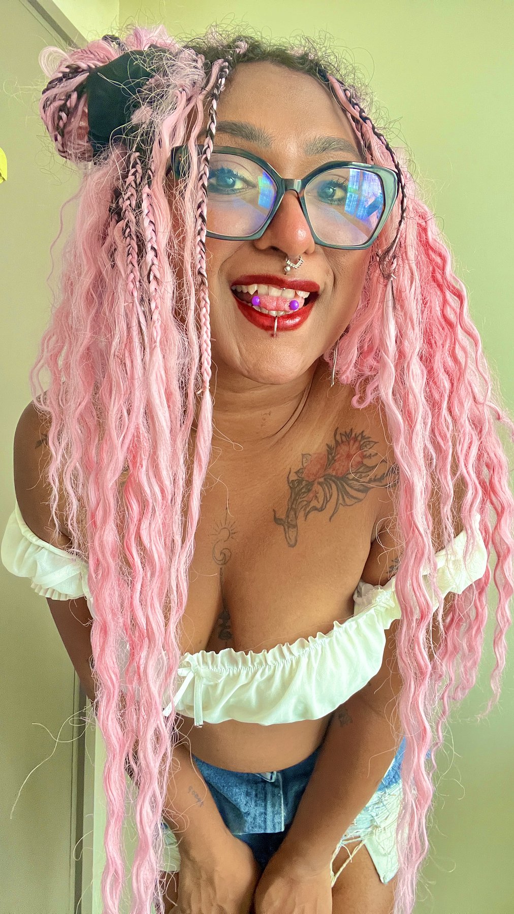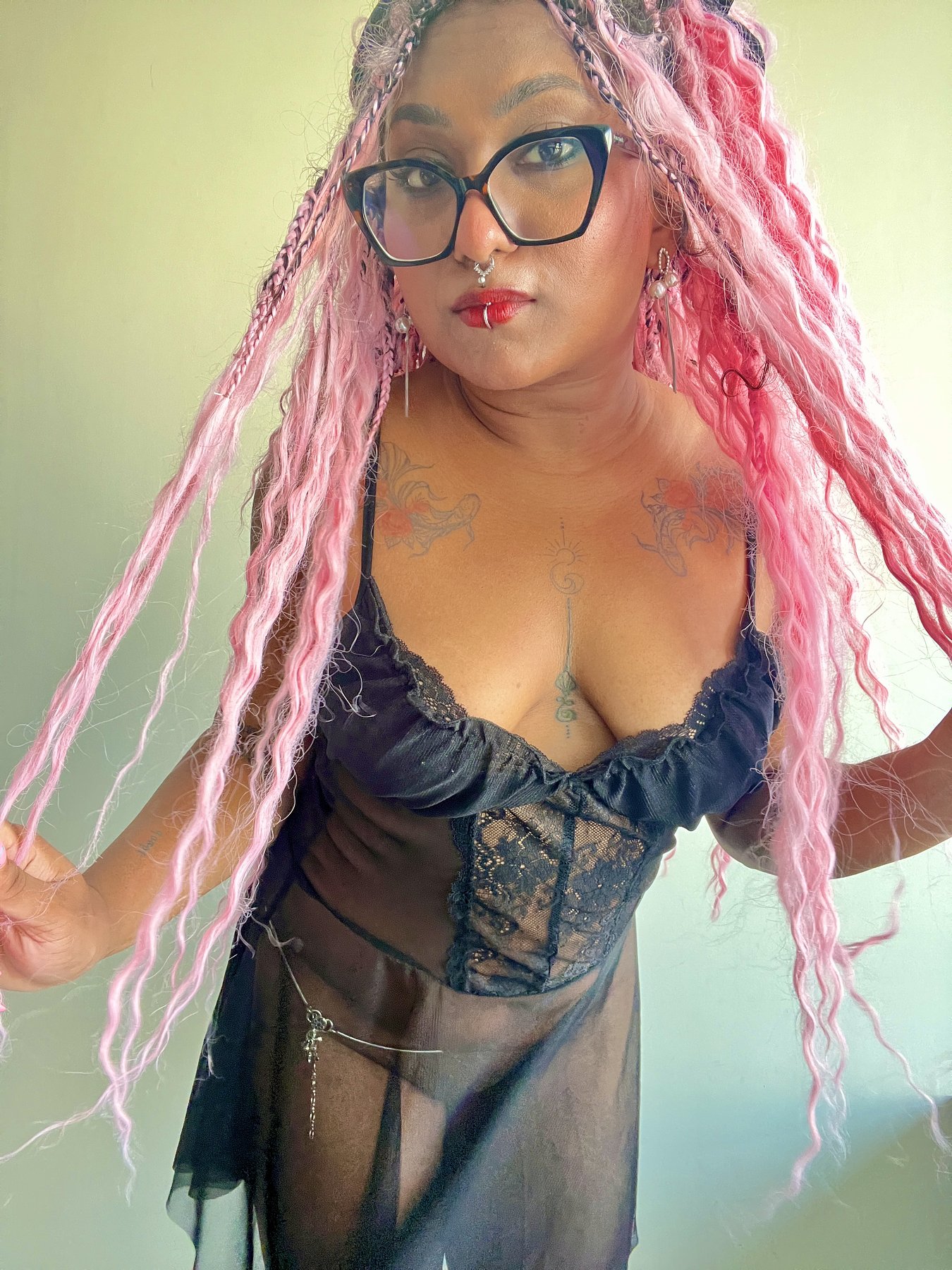 I'm Simi with pink long hair, tattoos and piercings