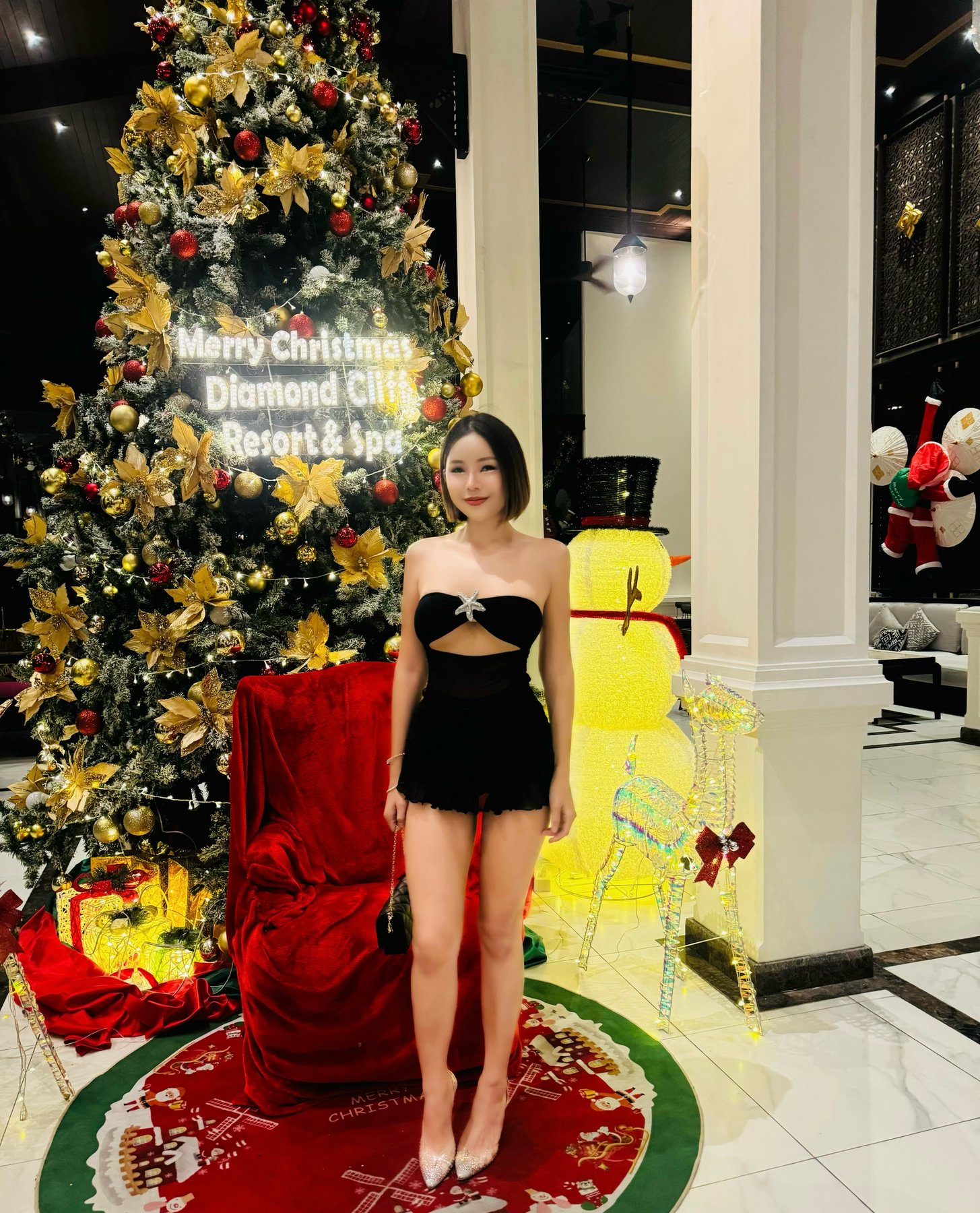 Wear stockings, high heels, and a outfit.👇🏻