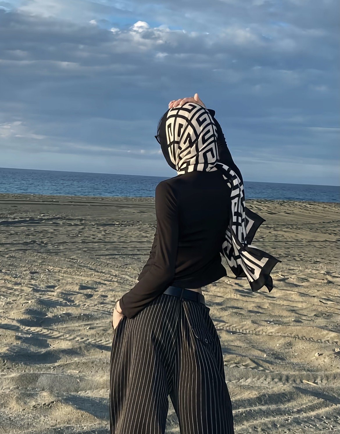 Vee stands confidently, exuding elegance.
