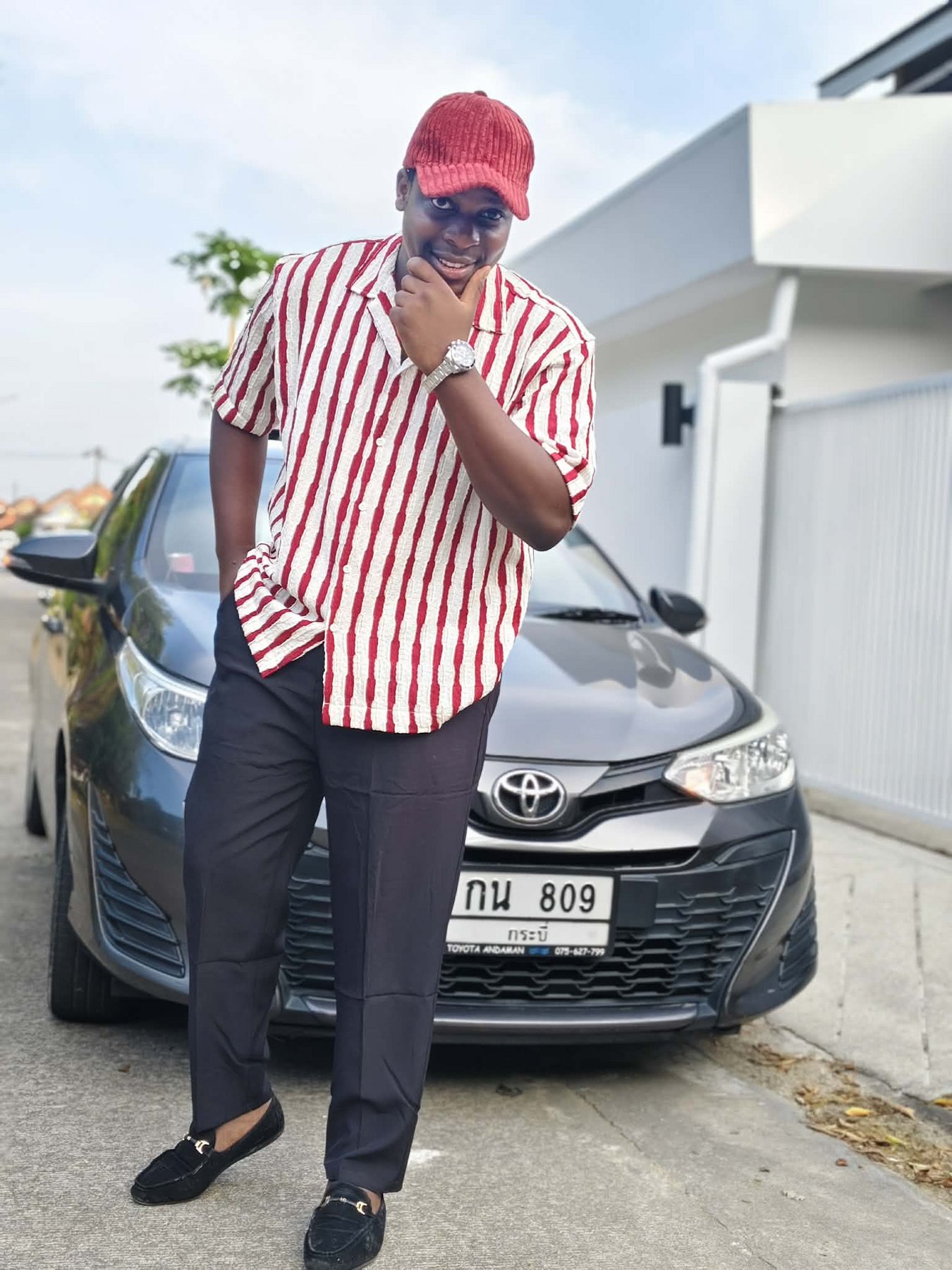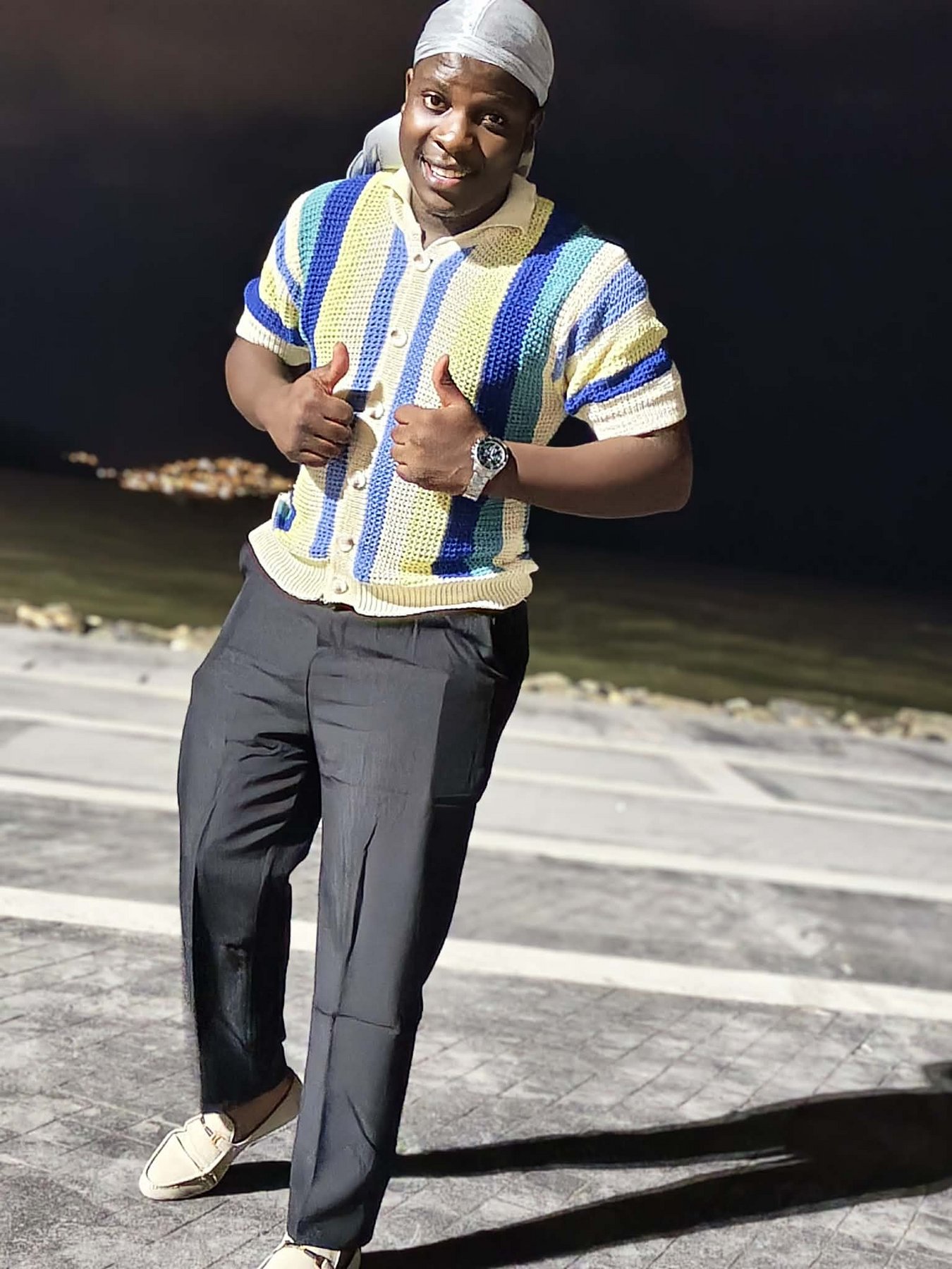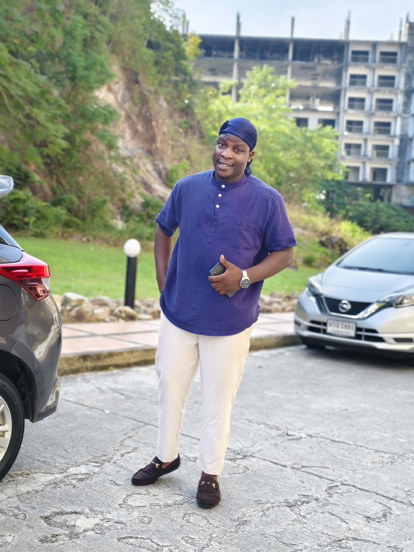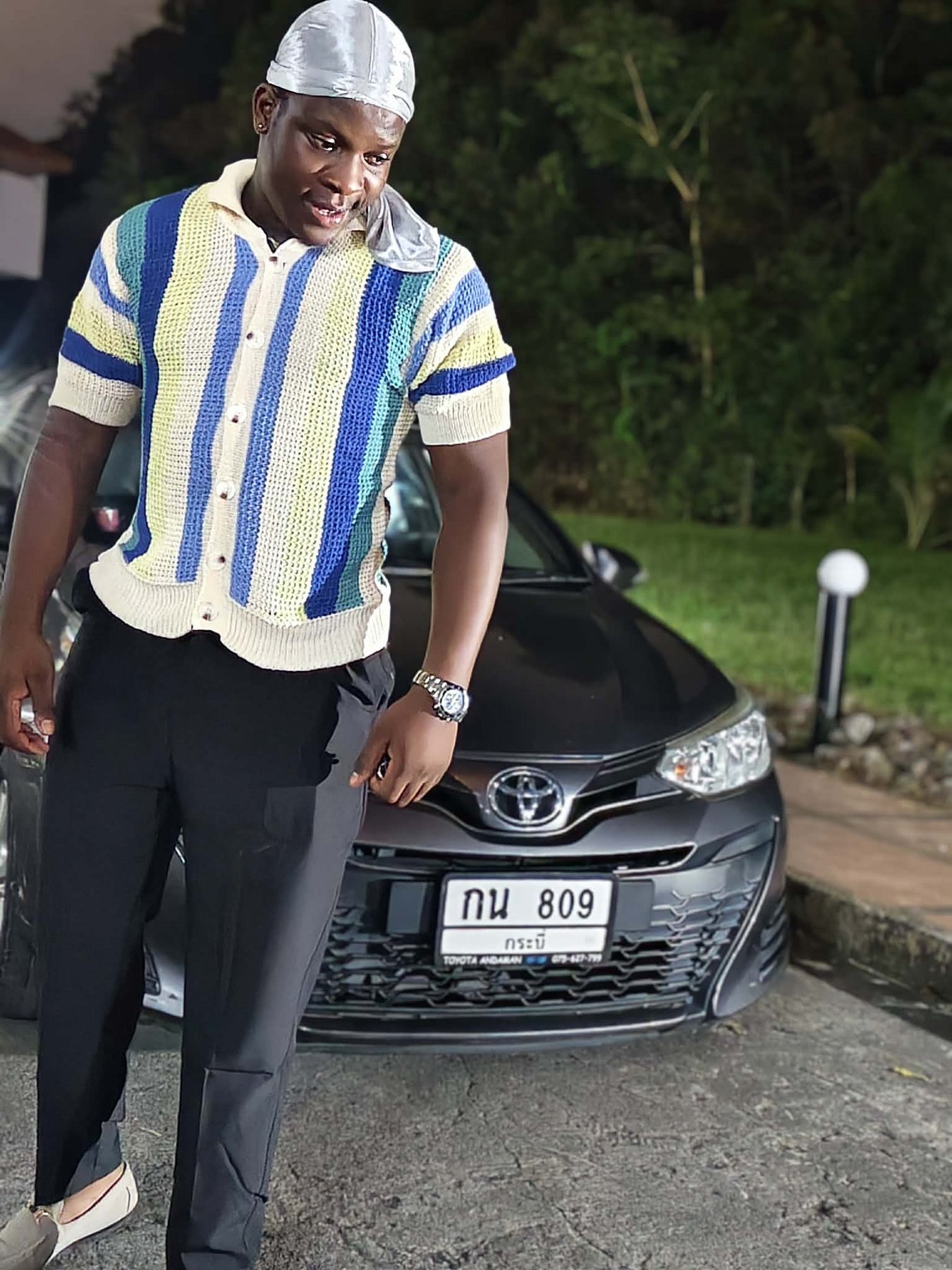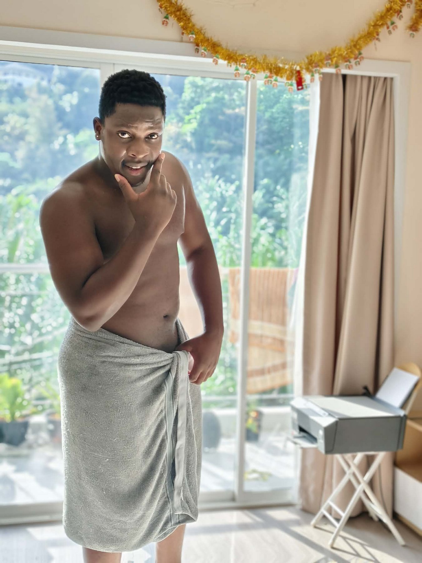 27 years old, African, with a muscular, athletic body and confident energy.