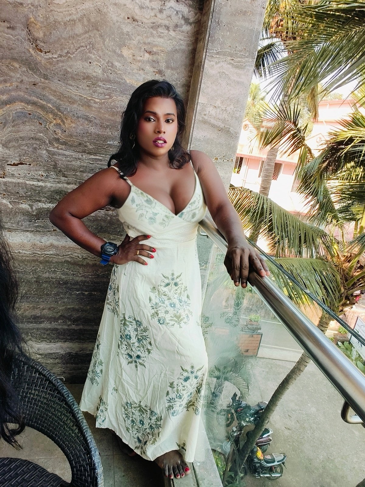 Dusky shemale with big active cock and big boobs with safe place