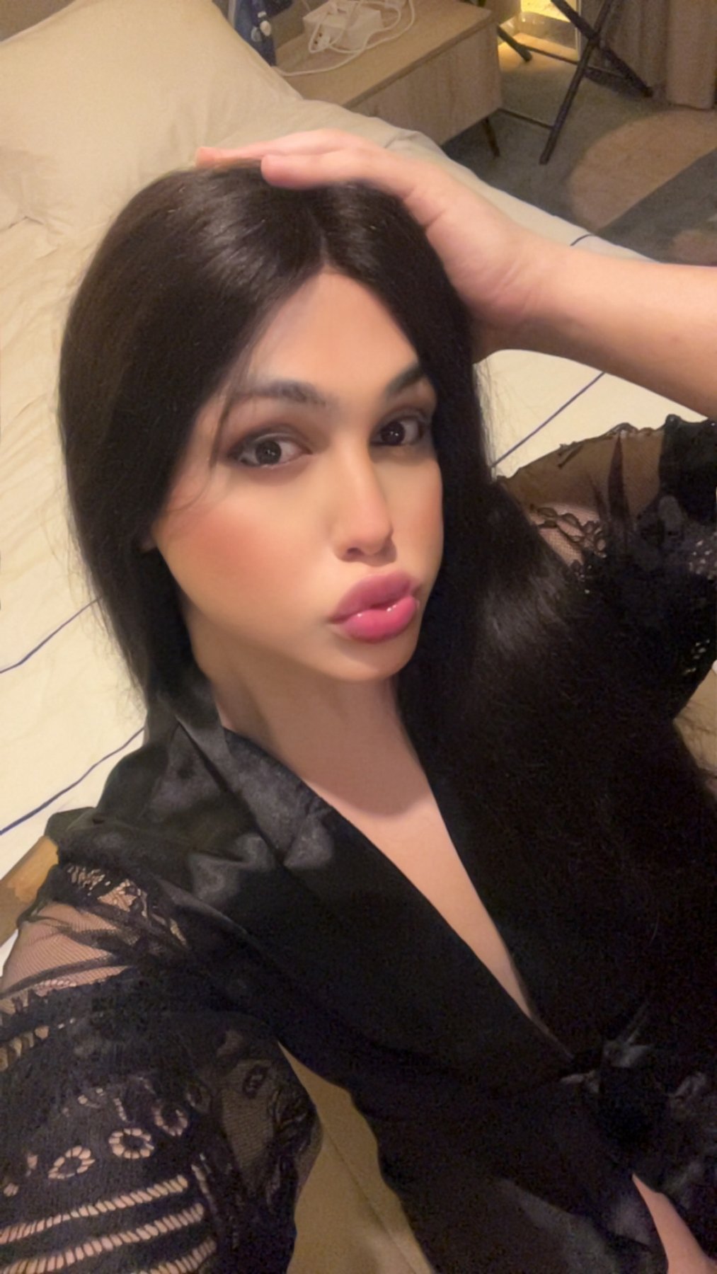Elegant curves, soft lips, and a quietly seductive vibe.