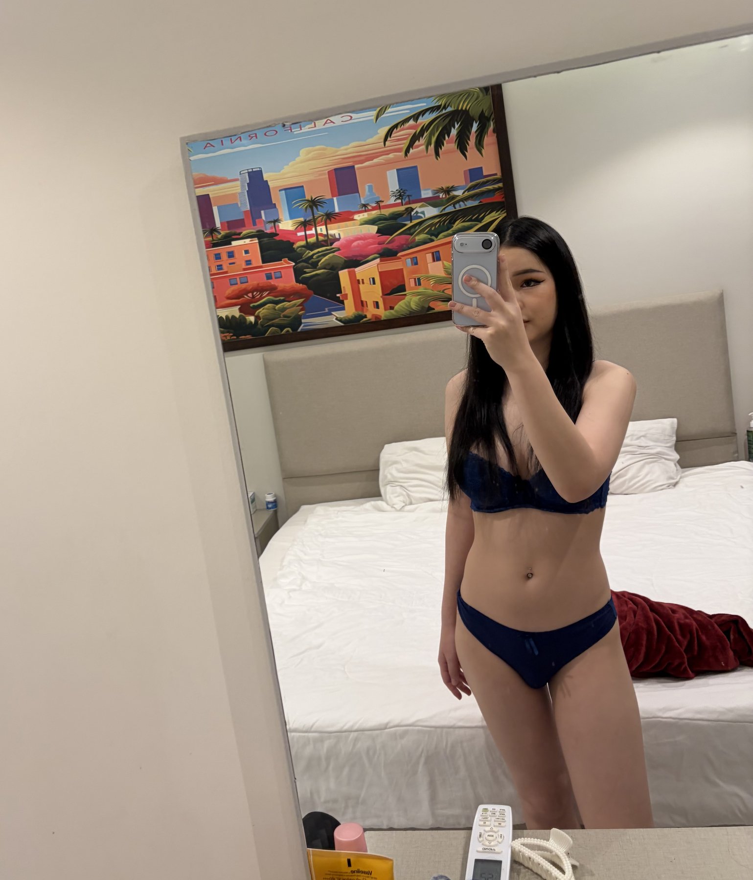 Am is a little cute Baby for you on the bed. 😊